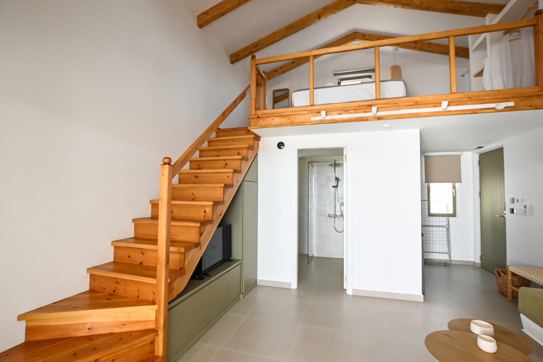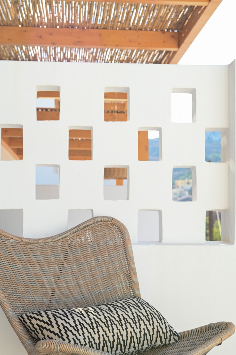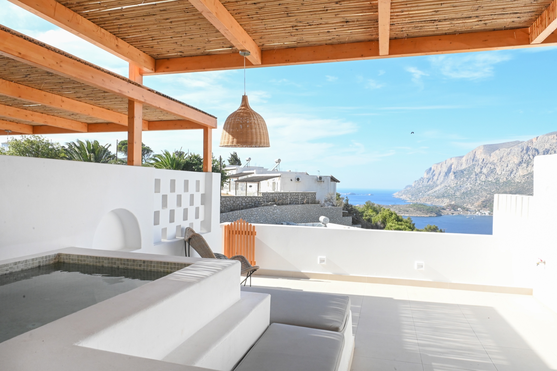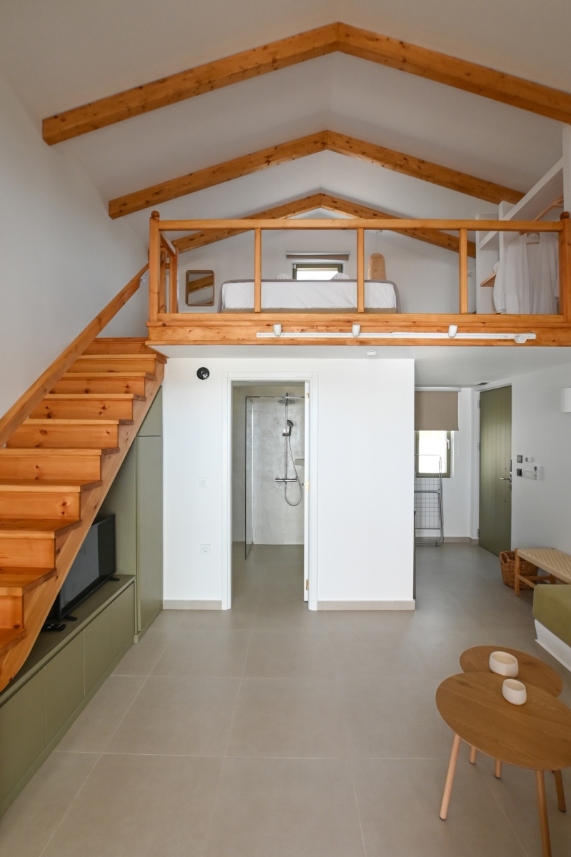 Escape to our stylish lofts studios where comfort meets adventure. Sleep peacefully on the king-size loft bed, relax on the sofa bed, and enjoy a fully equipped kitchenette for all your needs. Step out to your private terrace with plunge pool and take in stunning view of the Aegean Sea and Telendos. Just minutes from top climbing spots and Masouri, with shops, cafes, and beaches nearby.