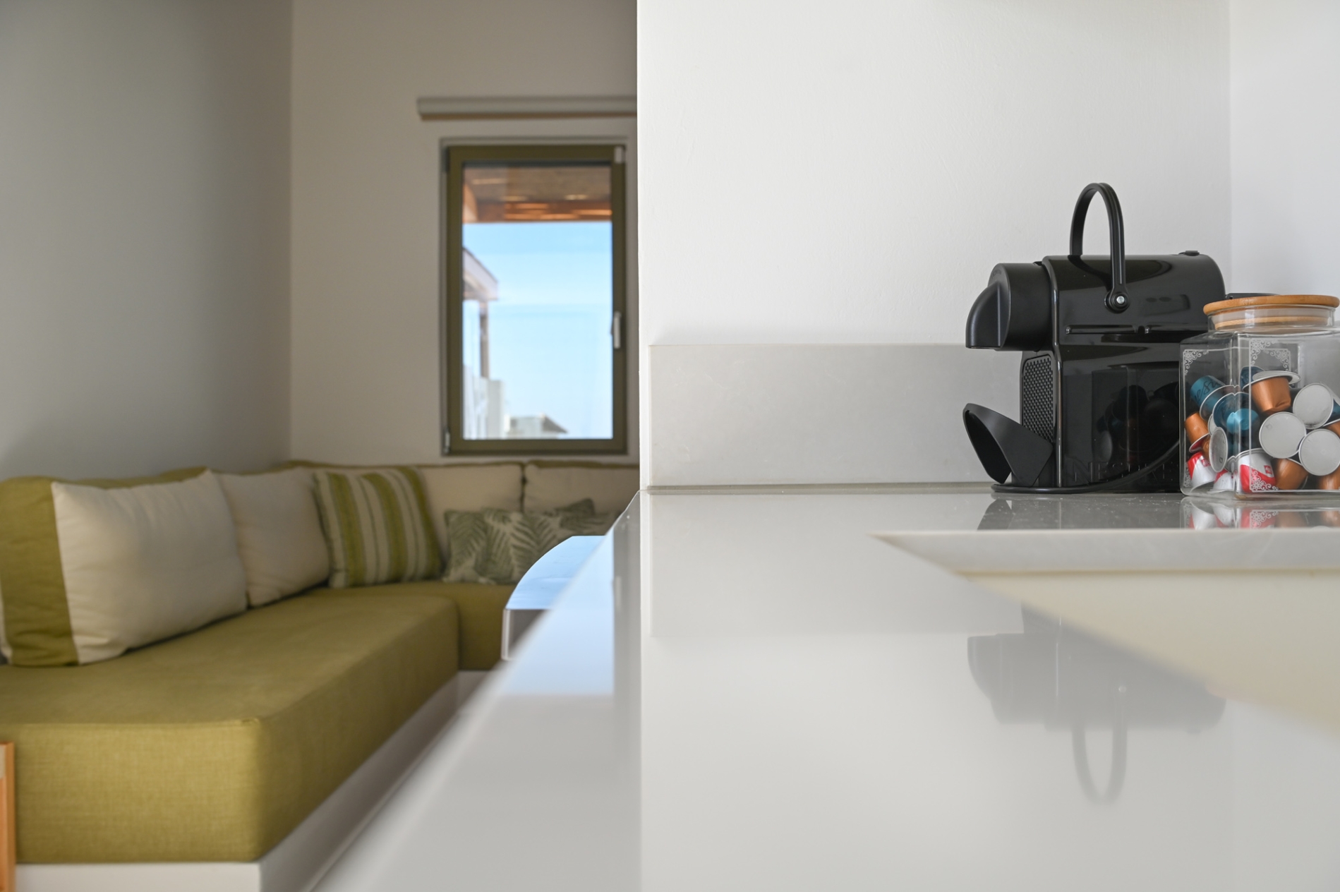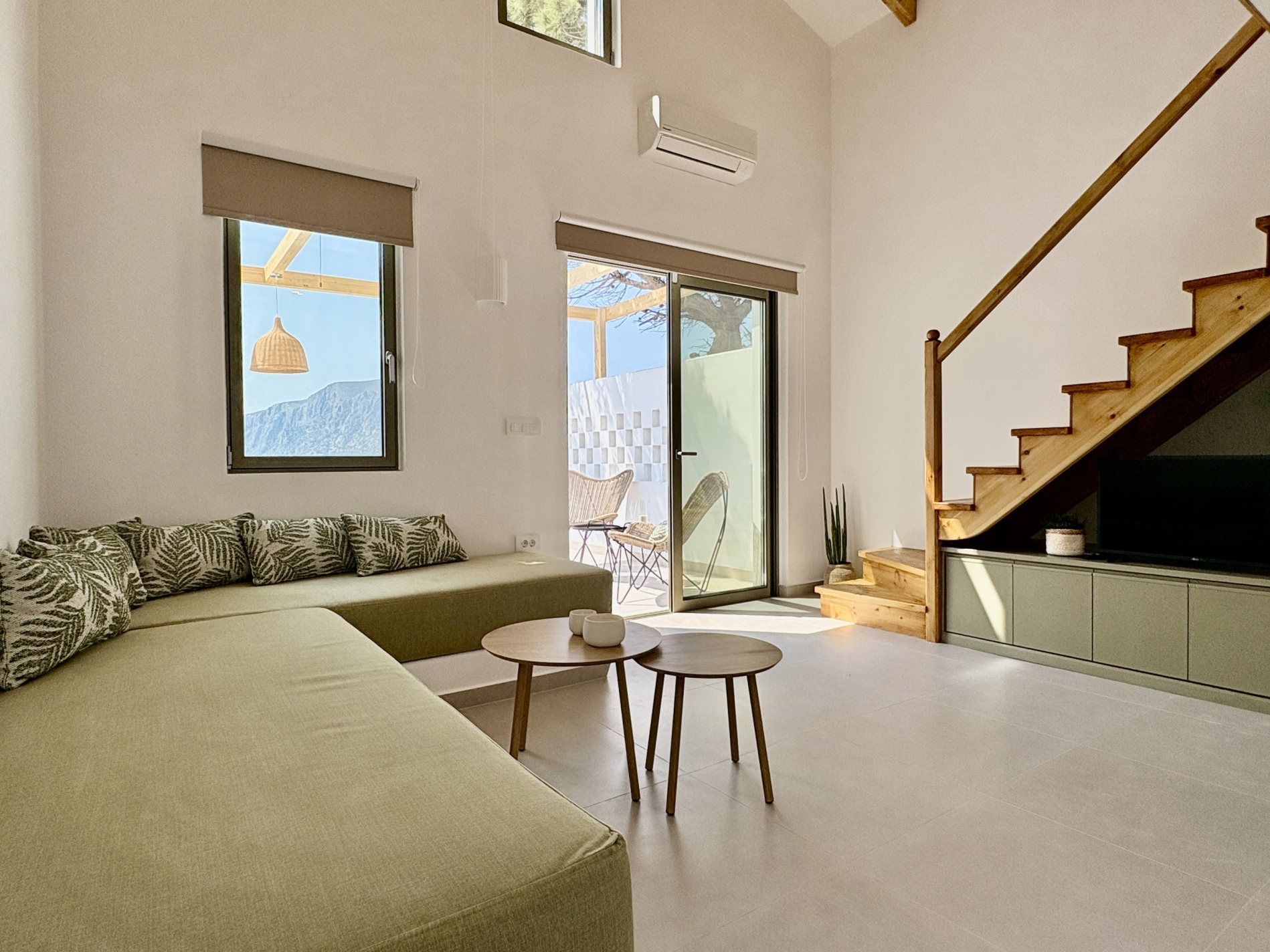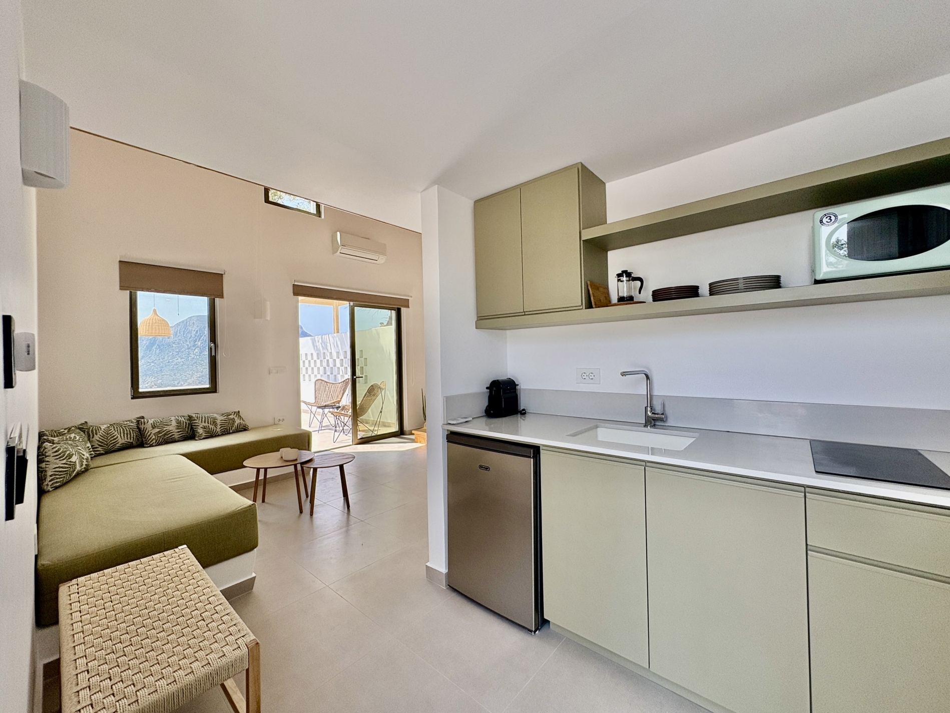 Escape to our stylish lofts studios where comfort meets adventure. Sleep peacefully on the king-size loft bed, relax on the sofa bed, and enjoy a fully equipped kitchenette for all your needs. Step out to your private terrace with plunge pool and take in stunning view of the Aegean Sea and Telendos. Just minutes from top climbing spots and Masouri, with shops, cafes, and beaches nearby.